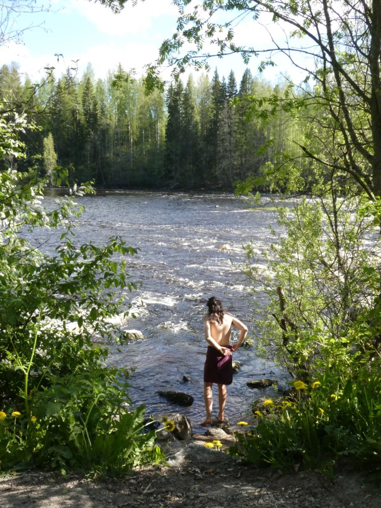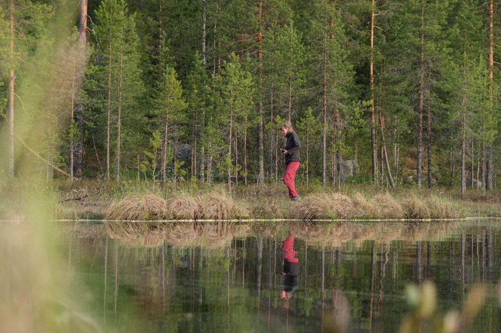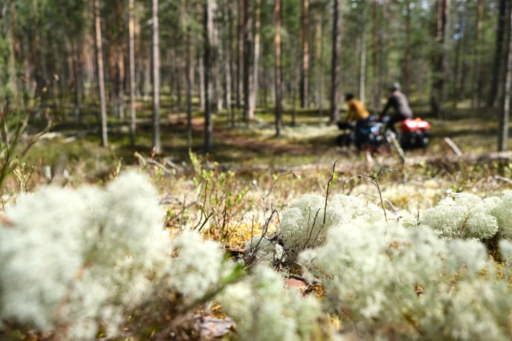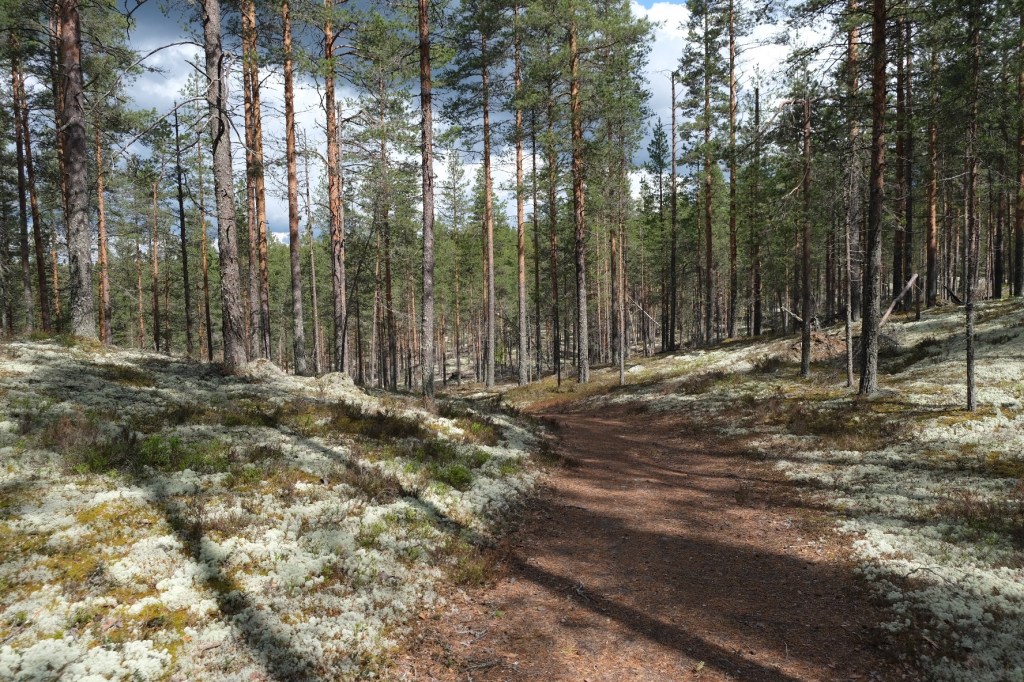 Gestern haben wir im Rokua Nationalpark in der bisher schönsten Kota übernachtet. Mit Blick auf einen super klaren See (mit süßen kleinen Barschen) haben wir im Trockenen, am Lagerfeuer, dem Regen zugeschaut. Dazu gabs gegrillten Feta mit Tomate – mmmh lecker 😀 In diesem Nationalpark waren große Teile des Waldbodens von grün-bläulichen Flechten überzogen. Das sah total faszinierend und märchenhaft aus – sowas haben wir vorher noch nie gesehen. Die Landschaft entstand am Ende der letzten Eiszeit, als Gletscherschmelzwasser feines Bodenmaterial ablagerte. Hier gibt es auch das tiefste Toteisloch Finnlands (50 m tief). Zum Wandern würden wir definitiv ein weiteres Mal kommen!