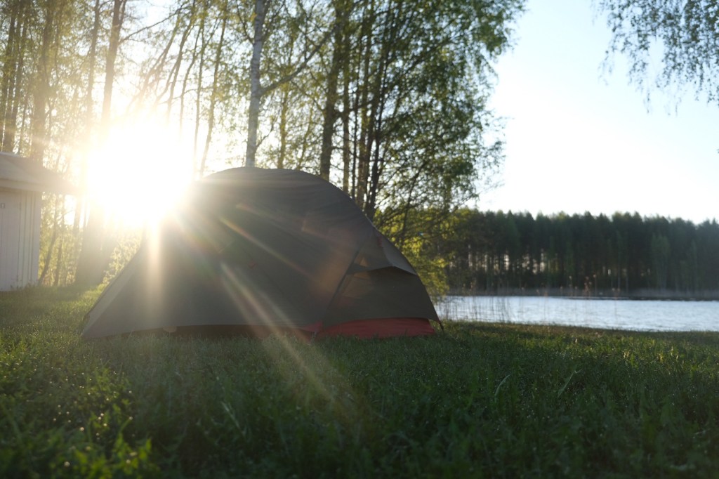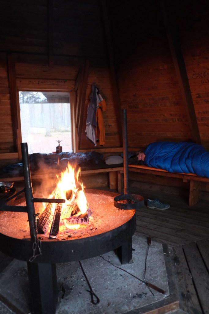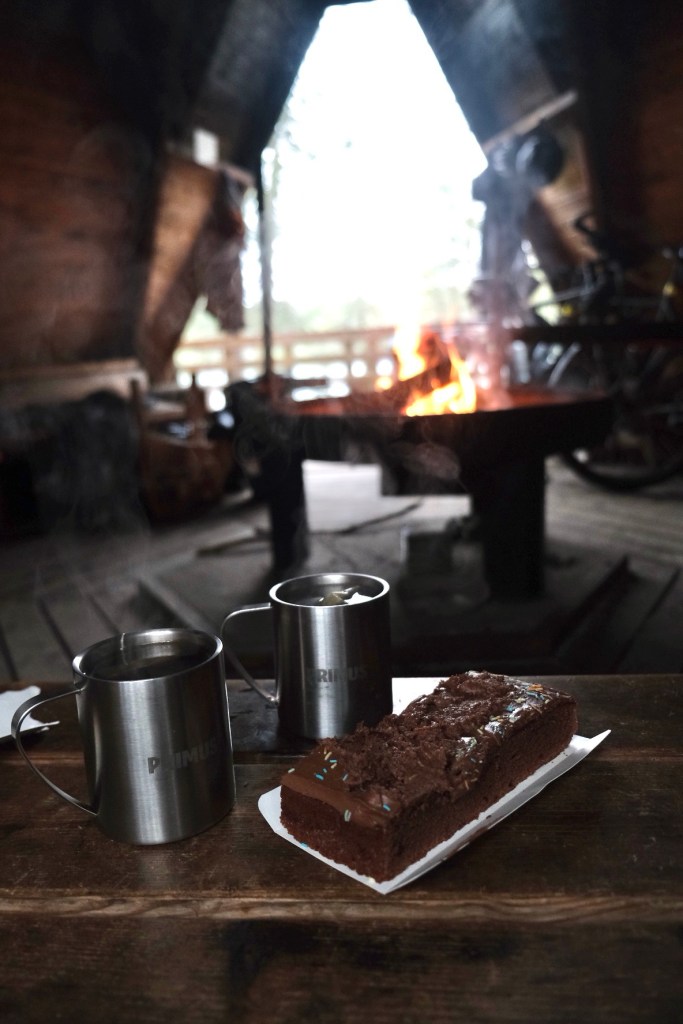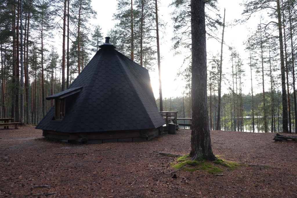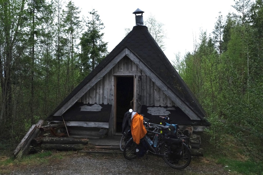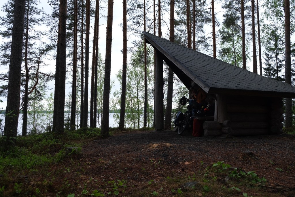 Seit wir durch Finnland radeln, haben wir eigentlich jede Nacht in oder neben einem Laavu oder einer Grillkota (kleine Hütten mit Feuerstelle in der Mitte) verbracht. Fast alle diese Plätze sind mit Plumpsklo, Feuerstelle und Brennholzschuppen ausgestattet. An solchen Stellen darf man sogar in Nationalparks übernachten – das ist natürlich eine super Möglichkeit, das Wildcampen zu lenken.